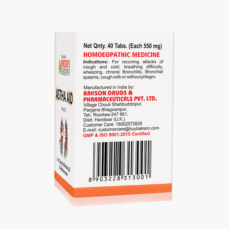 Manufactured in India by: Bakson Drugs and Pharmaceuticals Pvt. Ltd. Chouli Shahbuddinpur, Pargana Bhagwanpur, The. Roorkee-247661, Distt Haridwar, UK, India ,Customer care executive Mail id and contact details-customercare@buybakson.com, 18002572829
