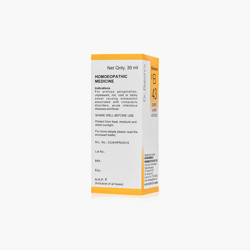 Indications: Helps relieve profuse perspiration, unpleasant, hot, cold or sticky sweat causing exhaustion associated with climacteric disorders, acute infectious diseases and fever.