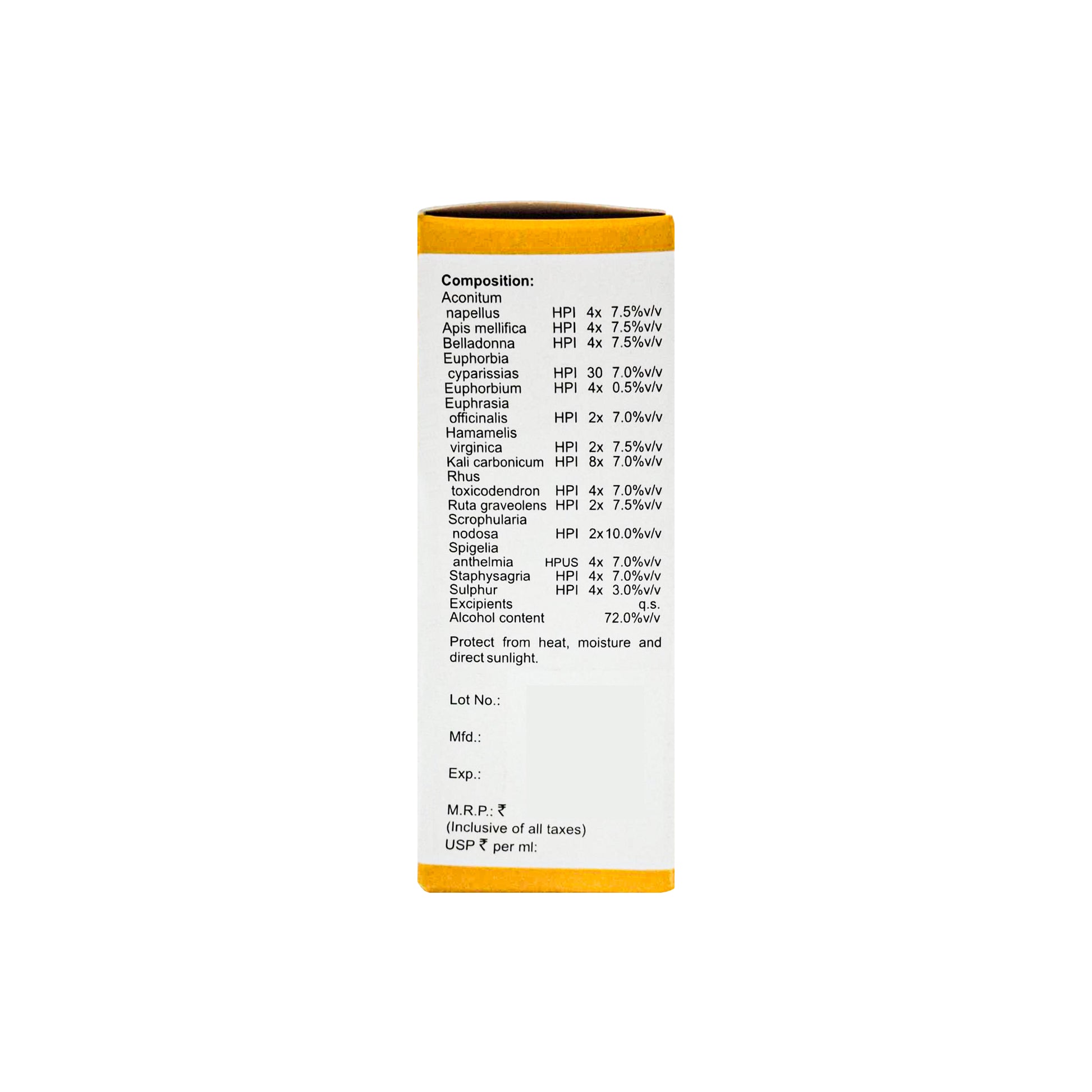 Protect from heat, moisture and direct sunlight.