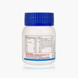 Composition: Calcium carbonate 100mg, Inositol 100mg, Vitamin C 75mg, Iron (Ferrous fumerate) 17mg, Lecithin 16.75mg, Vitamin E 15mg, Bioperine 7.5mg, Vitamin B2 1.6mg, Vitamin A 600 mcg, Folic Acid 400mcg, Biotin 30mcg, Vitamin D3 5mcg, Vitamin B12 1.5mcg.