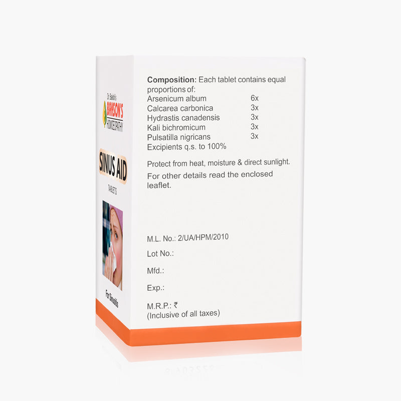 SINUS AID acts Homoeopathically preventing recurrences and thereby boosting immunity. It is specifically useful for continued and Chronic Sinusitis and relieves symptoms effectively