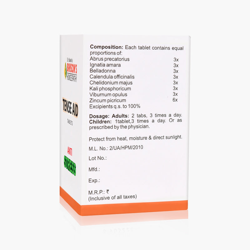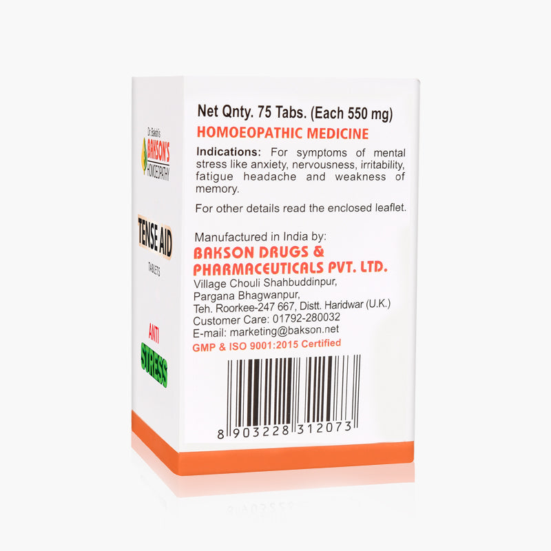 Bakson, a known name in the field of Homoeopathy now brings TENSE AID, an effective formulation of 8 Homoeopathic remedies which are competent in dealing with anxiety, nervousness, headache and other manifestation of stress disorders.