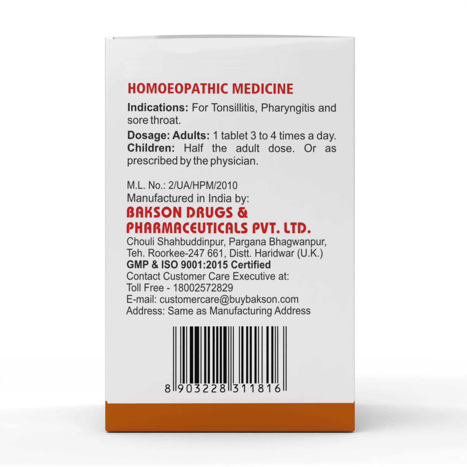Manufactured in India by: Bakson Drugs and Pharmaceuticals Pvt. Ltd. Chouli Shahbuddinpur, Pargana Bhagwanpur, The. Roorkee-247661, Distt Haridwar, UK, India ,Customer care executive Mail id and contact details-customercare@buybakson.com, 18002572829